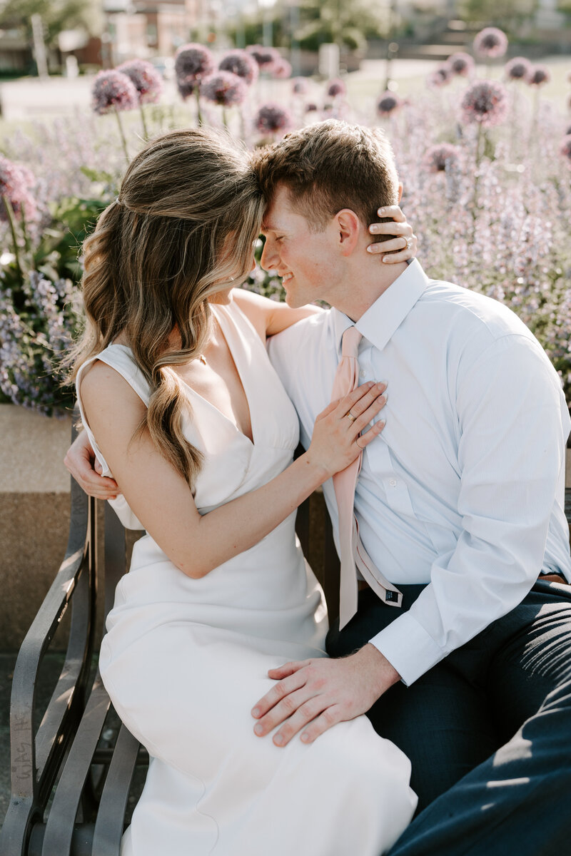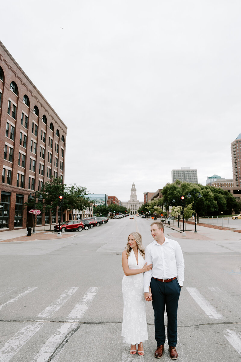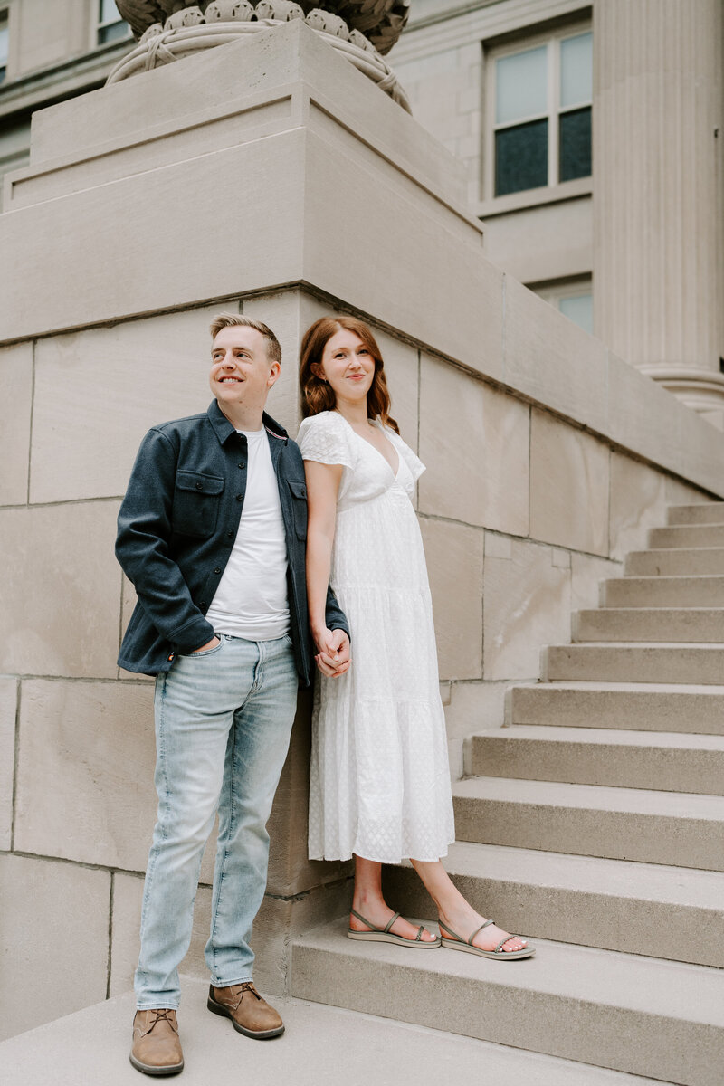 I love when couples choose a location for their session that complements their wedding. For example if you’re planning a chic, elegant wedding, it may be fitting to take your engagement portraits among the classic architecture in downtown Des Moines, while a local park or flower-filled fields may be more fitting for a couple planning a more cozy affair.