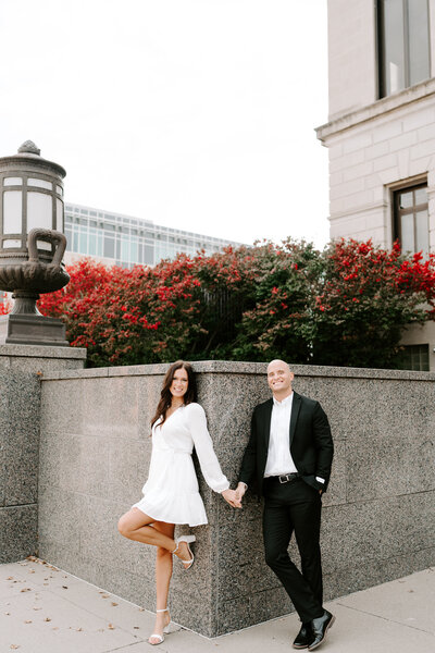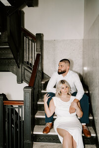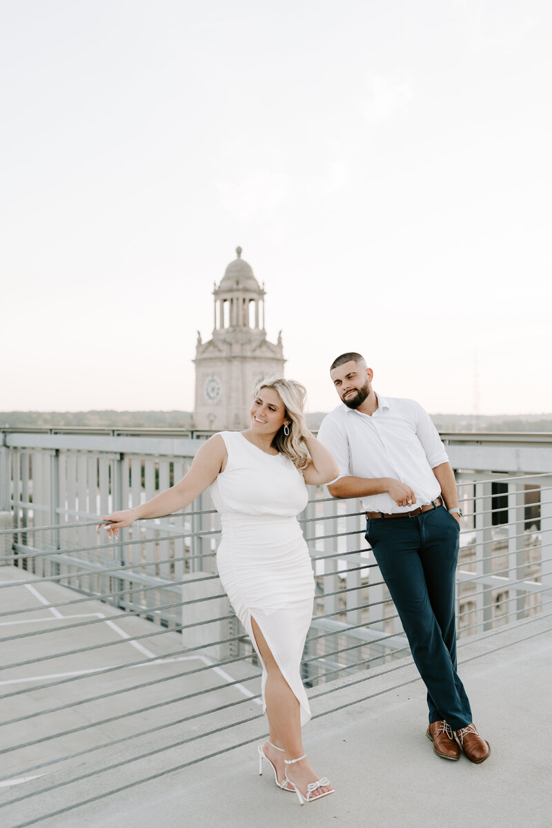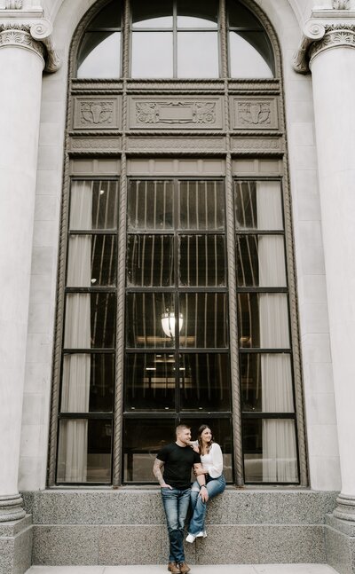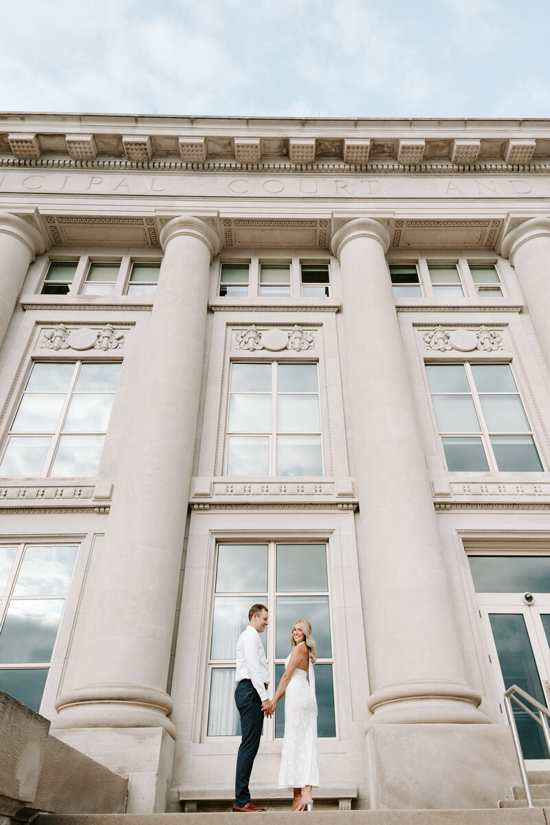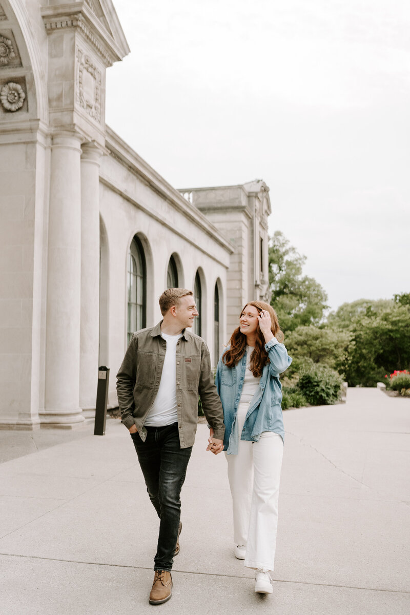 I love when couples choose a location for their session that complements their wedding. For example if you’re planning a chic, elegant wedding, it may be fitting to take your engagement portraits among the classic architecture in downtown Des Moines, while a local park or flower-filled fields may be more fitting for a couple planning a more cozy affair.